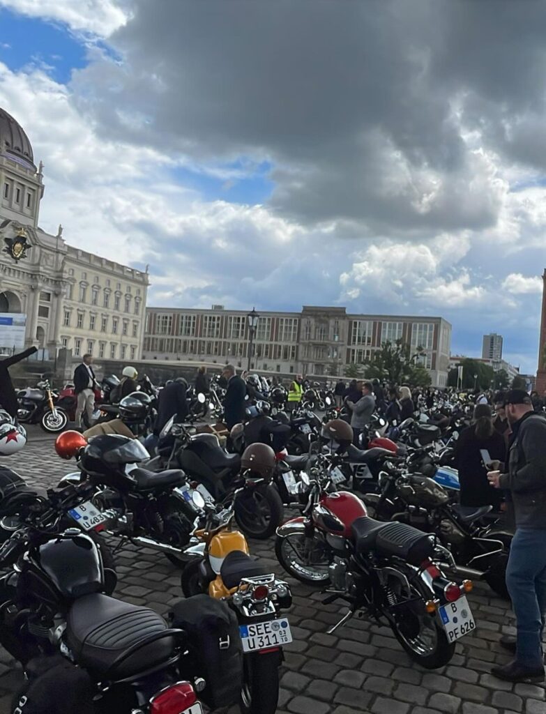 Rund 400 klassische Motorräder und stilvoll gekleidete Fahrerinnen und Fahrer sammelten sich mitten in Berlin, um gemeinsam ein starkes Zeichen zu setzen: